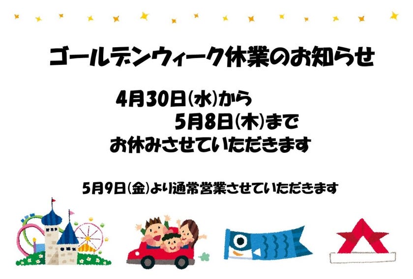 ゴールデンウィーク休業のお知らせ