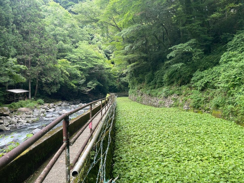 水も非常に綺麗で青く透き通っていて、その水を使いわさびを育てていました。
